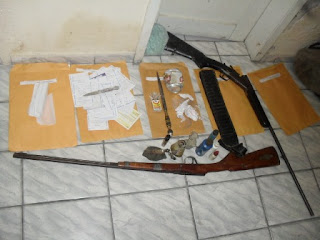0 Major Edilson, da 3ª CIPM em conjunto com a Polícia Civil realizou na manhã deste sábado mais uma operação na cidade de Acarí “ACARÍ LIMPA” dando continuidade combate ao tráfico de drogas e apreensão de armas e veículos irregulares naquela cidade.O comandante Edilson, cumpriram 10 mandados de busca e apreensão onde foram apreendidas: 01 espingarda de cartuchos, 01 espingarda bate-bucha, 09 cartuchos e munição, chumbo, pólvora, 01 punhal, embalagens plásticas usadas para embalar os entorpecentes, guardanapos também usados para embalar droga e vários extratos de depósitos bancários que serão periciados.