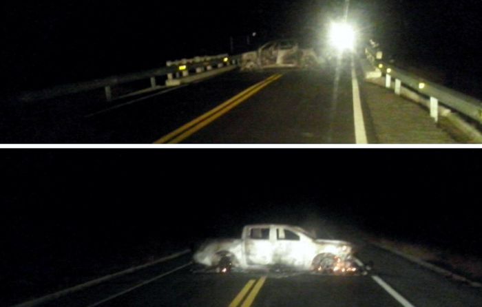 Na saída de Acari para Currais Novos próximo a entrada para Carnaúba dos Dantas, os bandidos queimaram dois carros que foram utilizados na ação criminosa. O objetivo era impedir, ou atrasar, a chegada de viaturas da Polícia Militar das cidades vizinhas. Os carros queimados, foram caminhonetes Hilux.