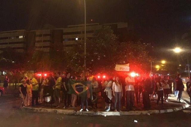 Pelo terceiro dia consecutivo, manifestantes se reuniram, na noite de sábado, em frente ao edifício onde mora o ex-ministro José Dirceu, no bairro Sudoeste, em Brasília.